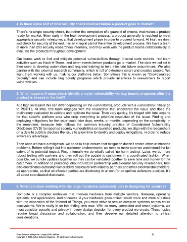 customers. In addition to practicing inbound CVD in partnership with external security researchers, Intel