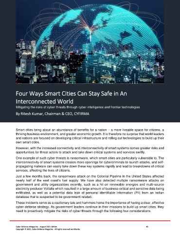 cyber defense strategy. As government leaders continue in their missions to build up smart cities, they