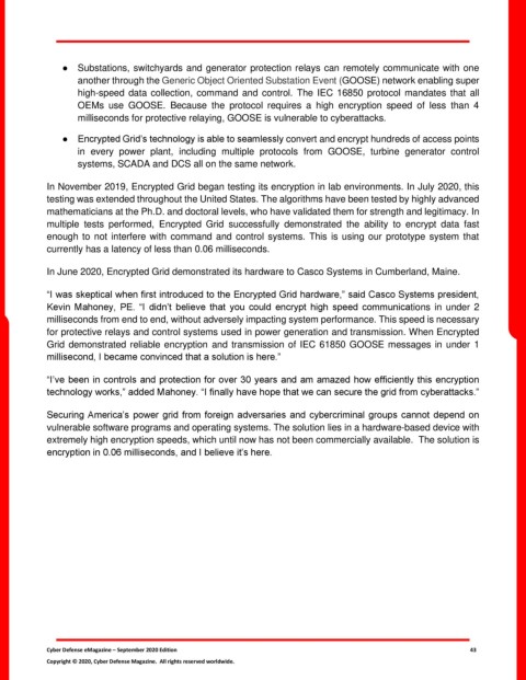 milliseconds for protective relaying, GOOSE is vulnerable to cyberattacks.