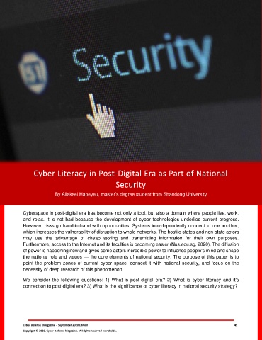 connection to post-digital era? 3) What is the significance of cyber literacy in national security strategy?
