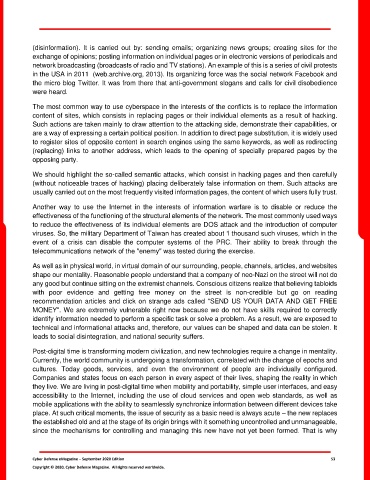 The most common way to use cyberspace in the interests of the conflicts is to replace the information