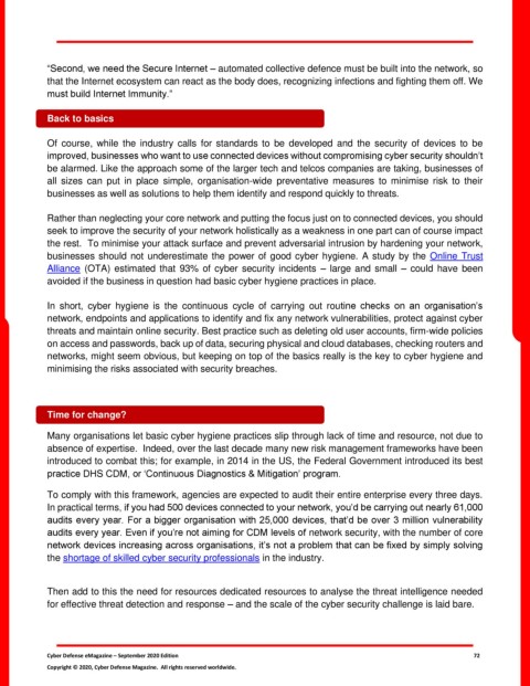 “Second, we need the Secure Internet – automated collective defence must be built into the network, so